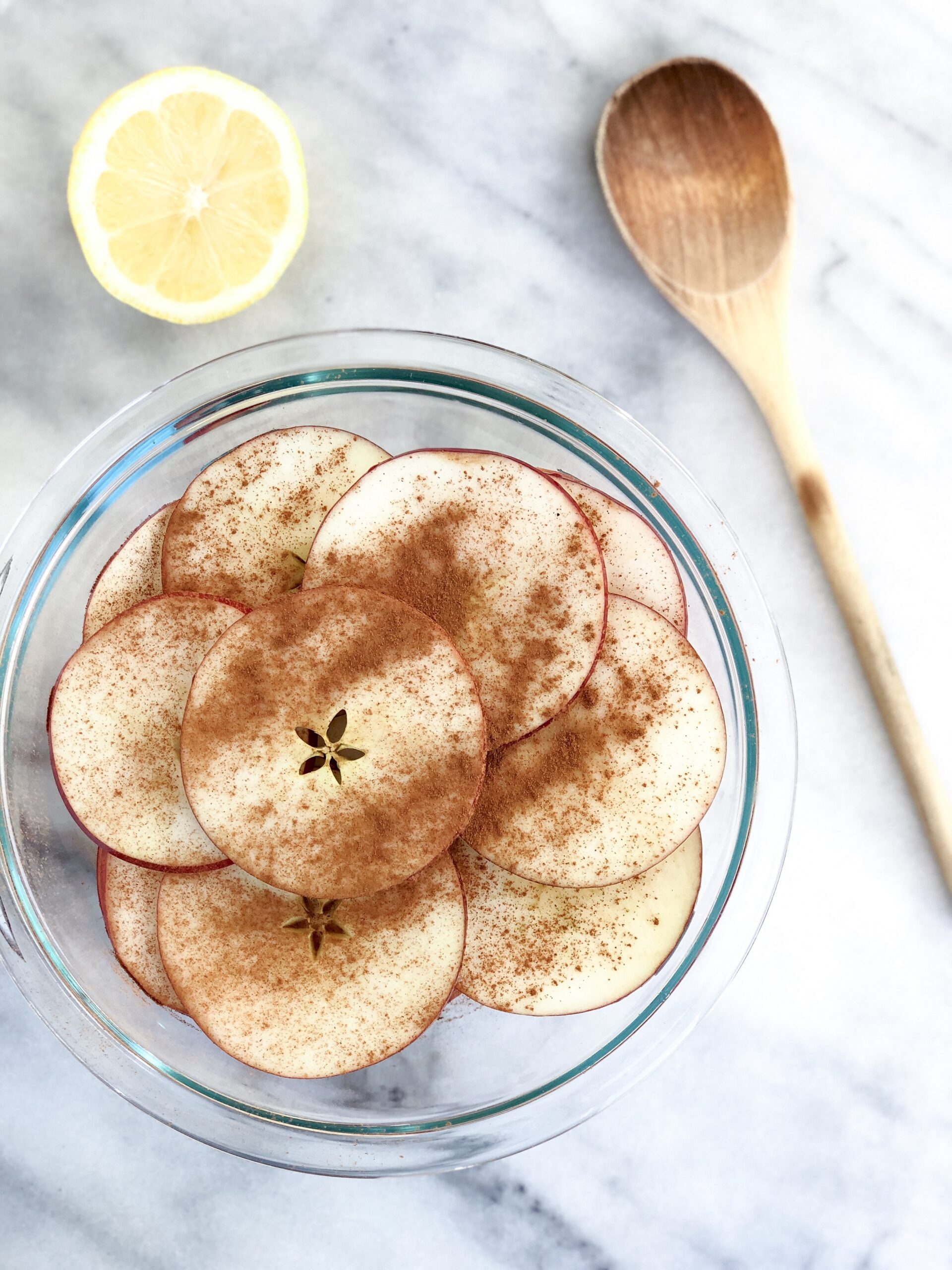 Lastly, these are made with all simple, wholesome ingredients and are chock full of fiber, leaving you nothing to feel bad about. Just apples, lemon juice, and cinnamon – that’s it! Plus, there’s something amazing about a snack that gives you that satisfying crunch of a chip without all the added sugars, saturated fat, and sodium.