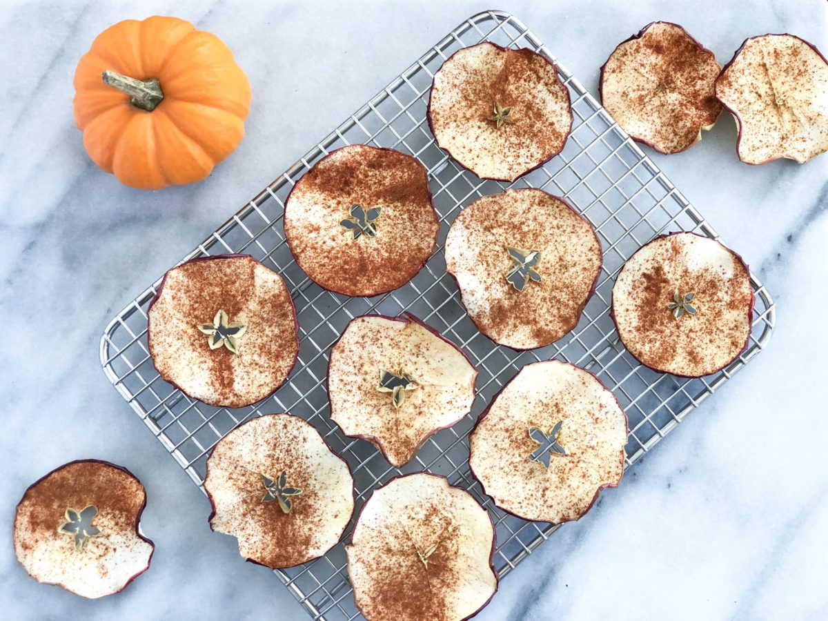 I’m a snack person. You will never find me without at least two different kinds of snacks in my bag at all times. If the subway breaks down and we’re stuck underground for 3 hours, I’m the girl you want to be with. The one downside to my snacking ways, however, is that I get bored with them easily and am constantly searching for new snacks. I also have high ingredient standards to make sure I’m noshing on nourishing nibbles and not junk. Snacks are an opportunity to squeeze in more nutrition to your day, not take away from it. That’s why these cinnamon apple chips are my current snack of choice, among many, many other reasons.