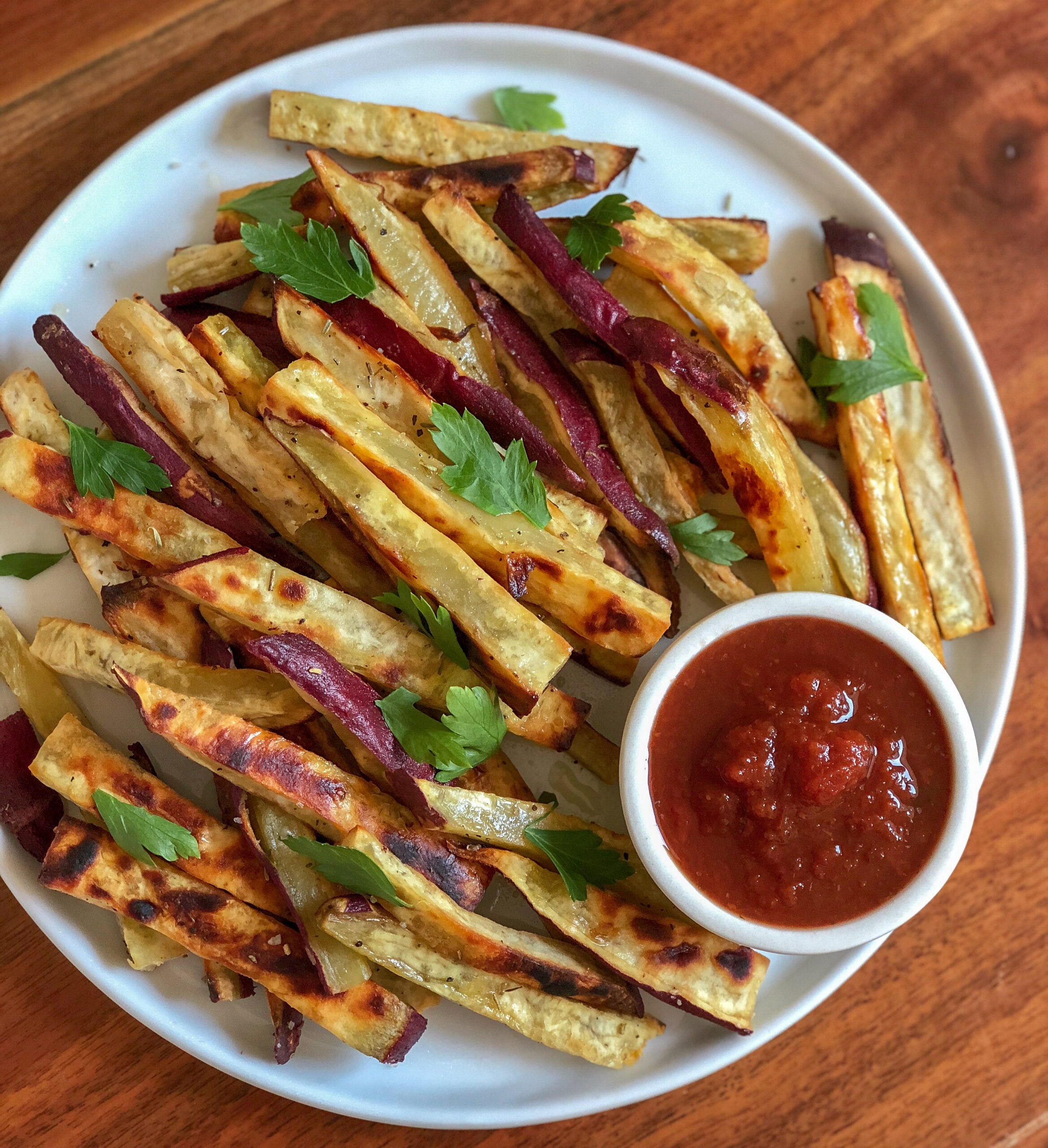 If you scroll through Instagram on a Friday, you’ll be pleasantly bombarded by #Fryday posts that have taken feeds by storm. From overflowing plates of crispy sweet potato fries to fresh radish “fries,” the trend is here to stay and I’m not mad about it!