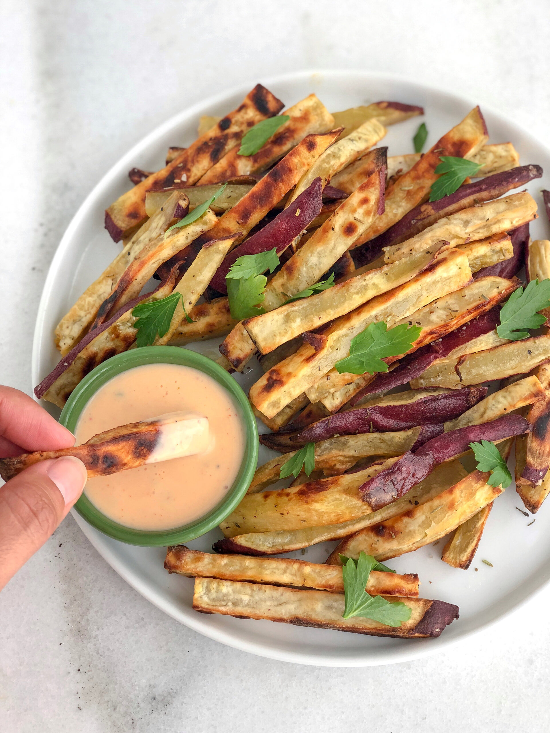 If you scroll through Instagram on a Friday, you’ll be pleasantly bombarded by #Fryday posts that have taken feeds by storm. From overflowing plates of crispy sweet potato fries to fresh radish “fries,” the trend is here to stay and I’m not mad about it!